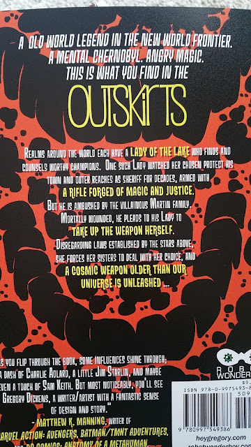 I have a new trade, the first bound book for the OUTSKIRTS anthology, and the Cosmic Ladies of the Lake stories front and center. That sets up next year's OGN, which combines Lovecraft, the Heroic Age of Exploration, and, of course, magic weapons.